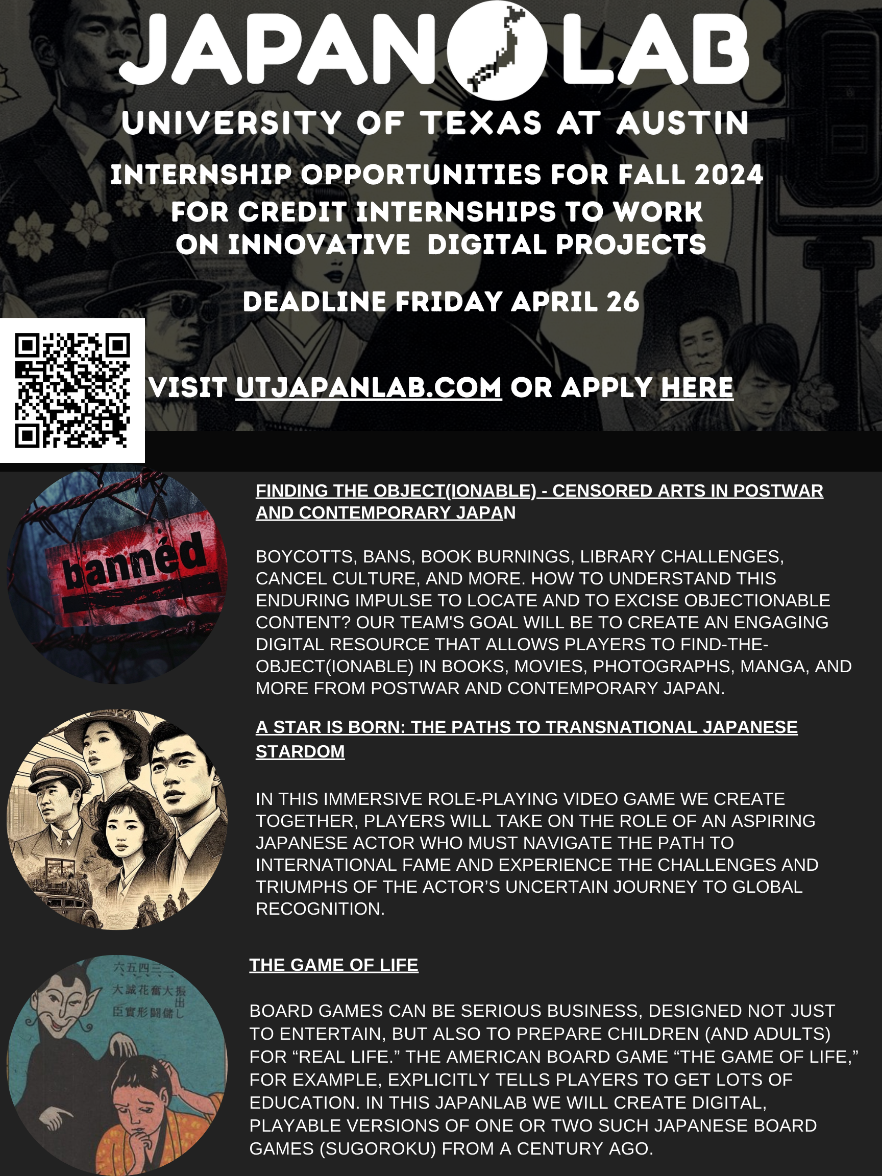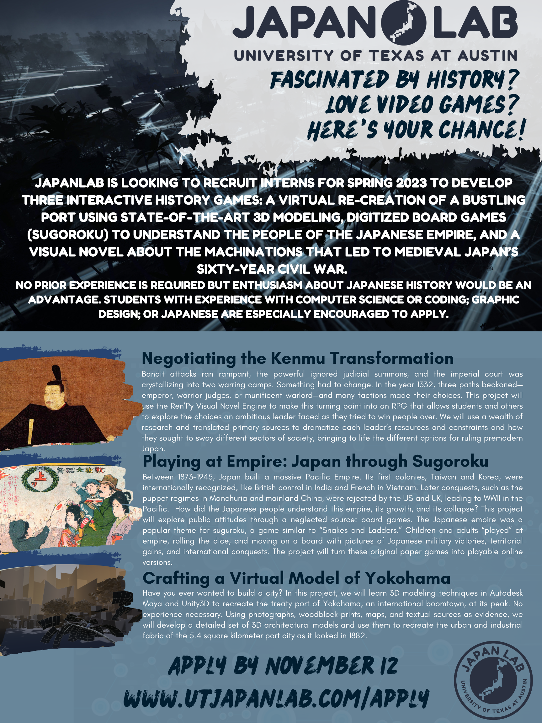 JapanLab holds regular events. These include a range of speakers and project expos. Below are some posters from JapanLab events as well as recruiting flyers for different teams. View fullsize View fullsize View fullsize View fullsize View fullsize View fullsize View fullsize View fullsize View fullsize View fullsize View fullsize View fullsize View fullsize View fullsize