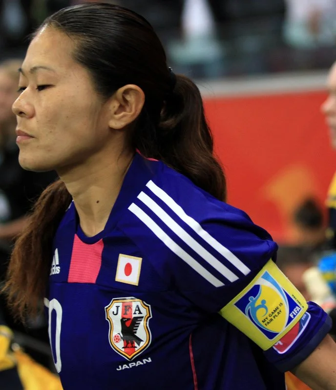 Homare Sawa captaining Japan in the 2011 FIFA Women's World Cup, image from Wikimedia Commons